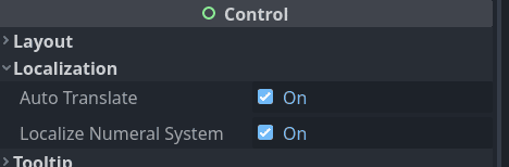 Control (GUI) nodes now include Localization settings. To make localization even simpler, the context-aware translation system now supports plurals and generates translation files directly from project scenes and scripts.