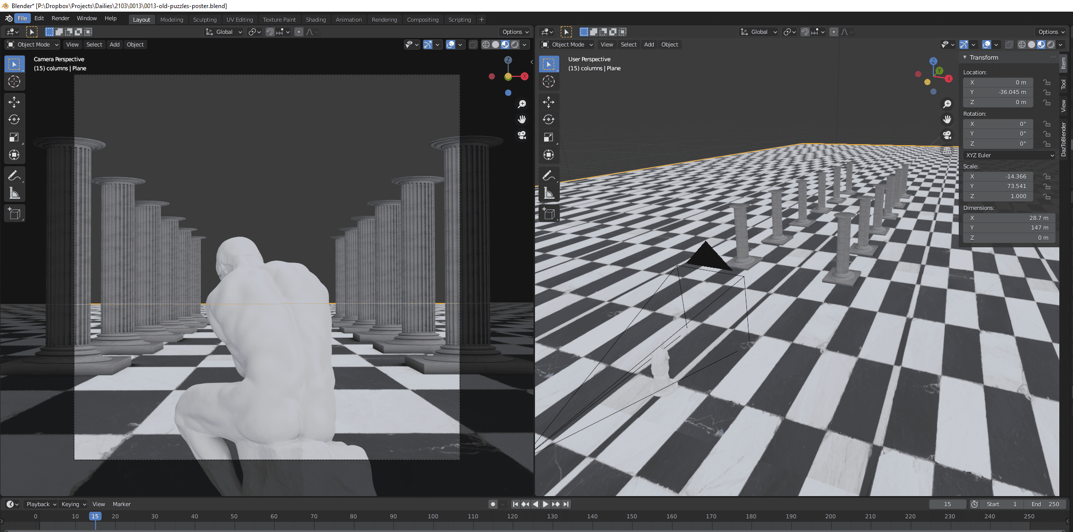 Instant Meshes was also involved, to crush down Rodin's statue from 800K tris down to 25K. I then baked the high poly details into a normal map.