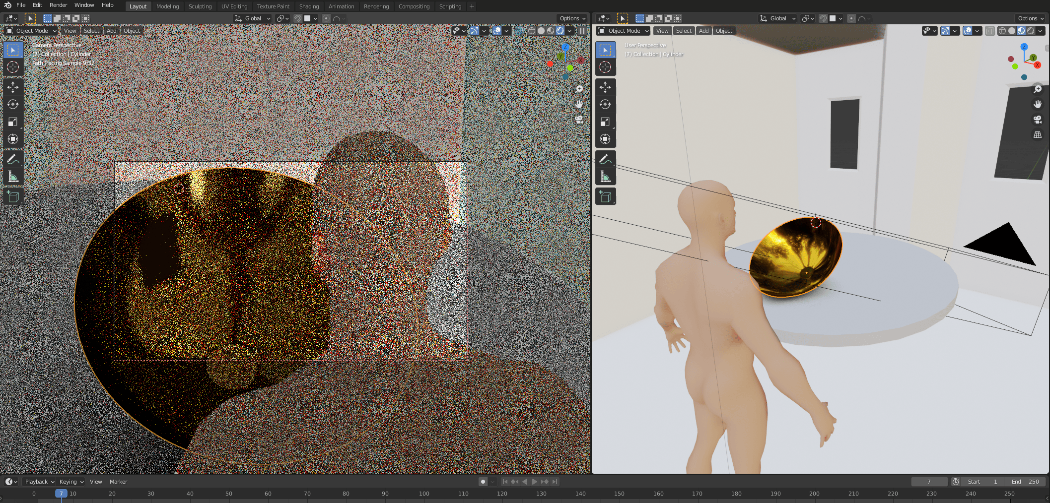 I modeled the kitchen, the table, and the bowl using their real-life measures. Using my basic knowledge of Blender's shaders and lighting I managed to replicate the effect. The problem is that the final render looks terrible. No matter what I tried, I didn't manage to remove the fireflies/noise. Also, I don't understand why the wall rendered… pink? So I tried to stylize the final picture.