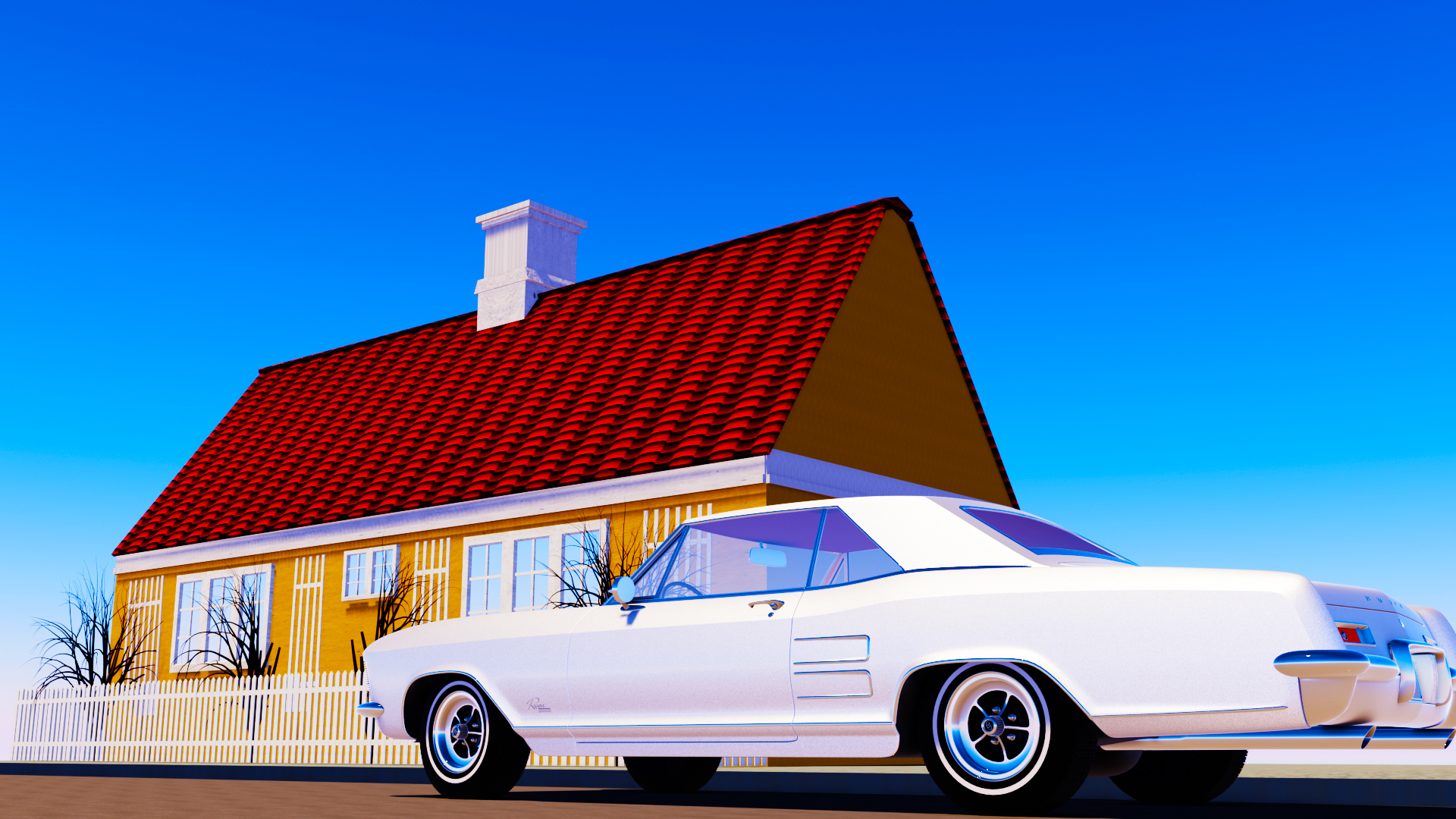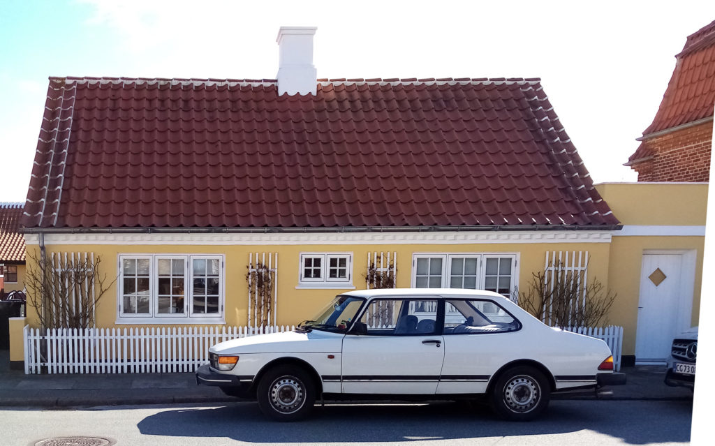 My wife found in Skagen – Denmark, a rectangular and squared yellow house and a white car, just like children's drawings – she even said: "oh this is how I used to draw houses and cars"! She got so excited about her finding that she took many photos and got very happy with it.