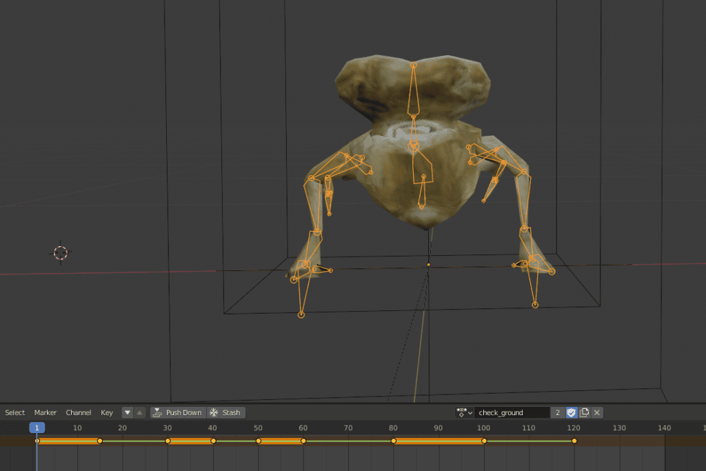 Day 76: Jar Creature 1 Rigged and Animated May 25, 2021 Updated: May 25, 2021 Jar creature from yesterday rigged and animated. I have to learn how to make better IKs and how to make more natural animations. My animations play like animatronics. A PS1 Silent Hill-inspired creature made in Blender. Another animation: Process ← Previous post Day 75: Jar Creature 1 Textured Next post → Day 77: Rigify First Contact
