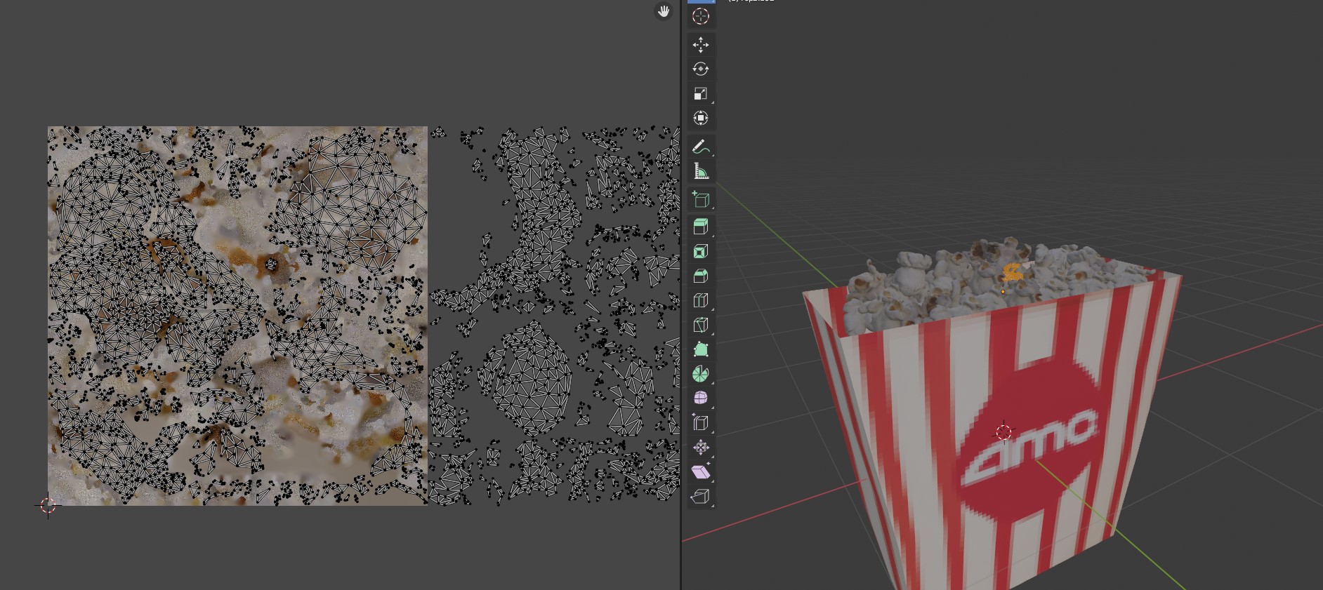 Popcorn 3D scan and texture: "Popcorn Flake" (https://skfb.ly/6UwV9) by Geksaedr is licensed under Creative Commons Attribution (http://creativecommons.org/licenses/by/4.0/).