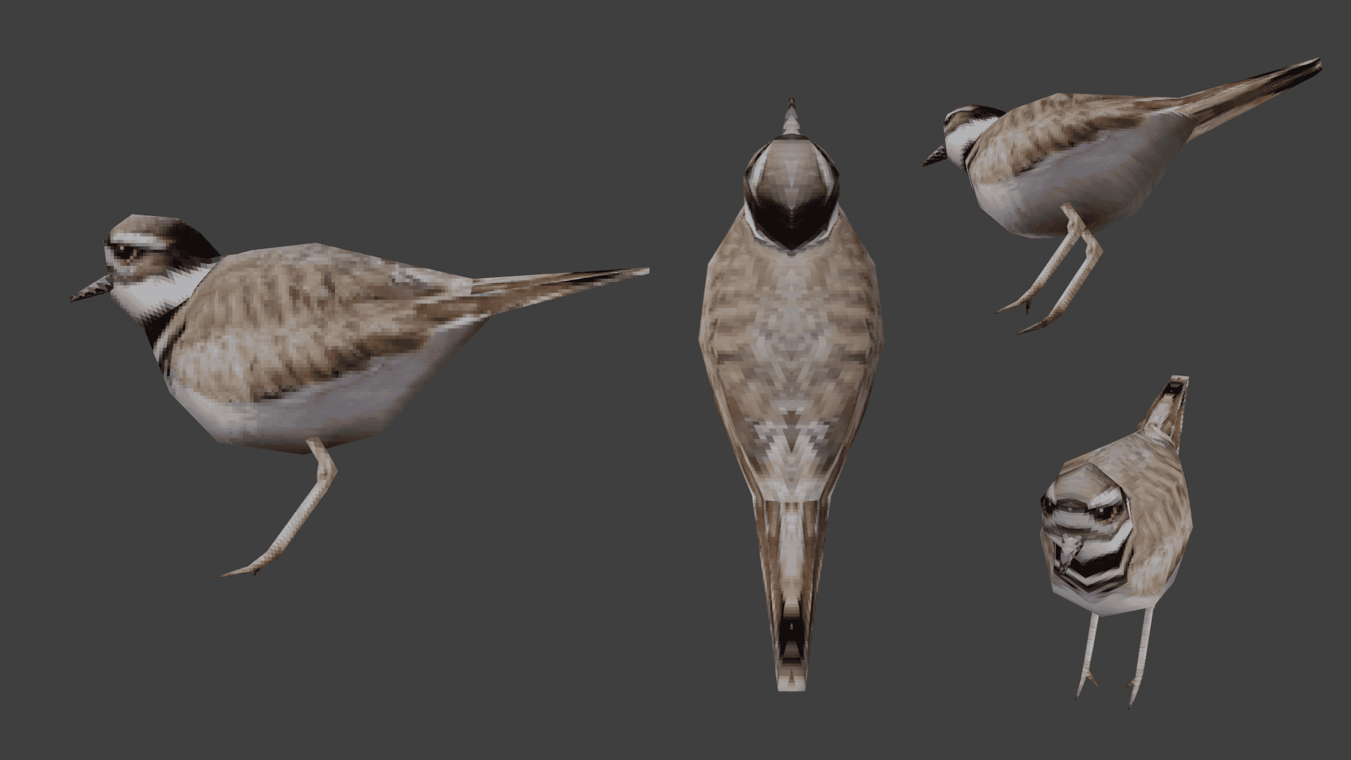 Day 81: Killdeer Bird May 31, 2021 Updated: May 31, 2021 A low poly/PS1 model of a small bird. Process ← Previous post Day 80: AMC Popcorn Next post → Day 82: Donut Straight UVs