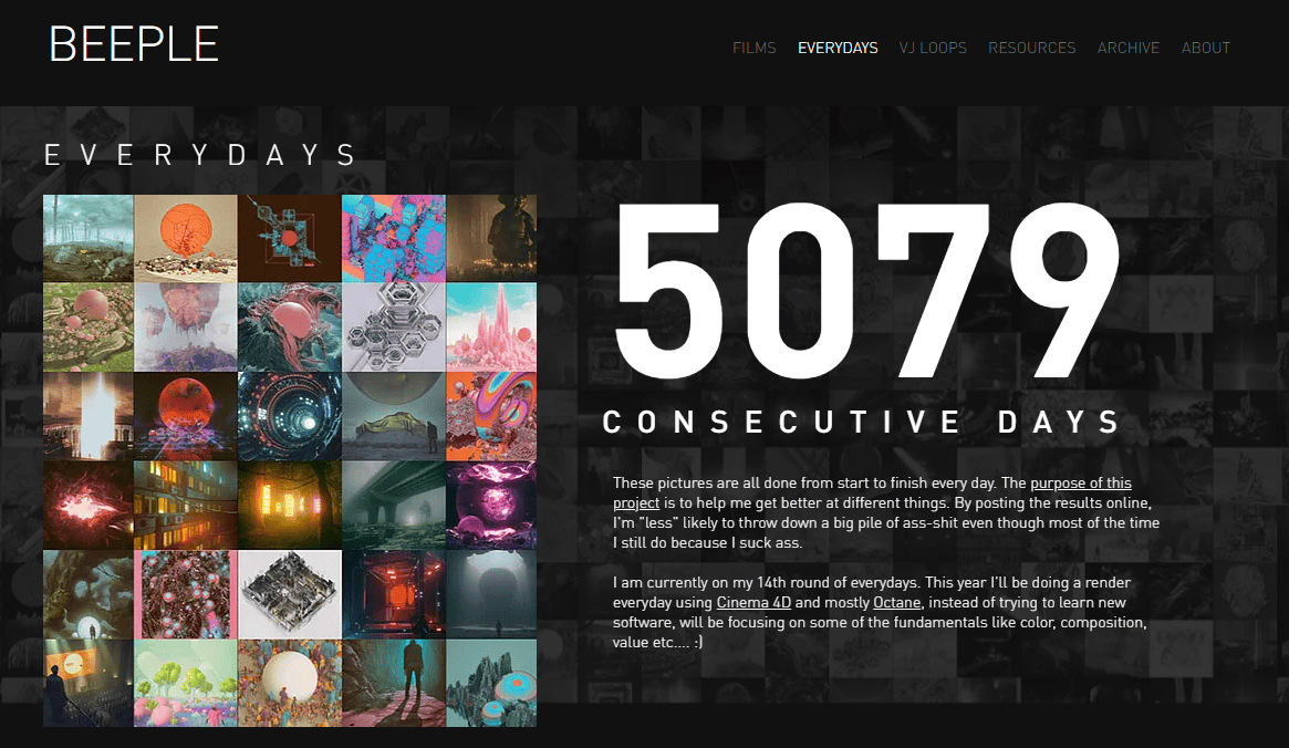 I do not know if I will ever get as fast or as good or as far (5000+ days) as Beeple. I do not know if I will ever sell a NFT in Christies or Sothebys for millions (US$ 69 million dollars, I mean). But I want to improve at art, fight perfection and get loose.