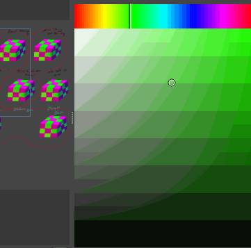 Learning color harmony and hue-shifting, or how to pick up lighter or darker colors without just going to darker or lighter pigments, but instead, by shifting the hue.