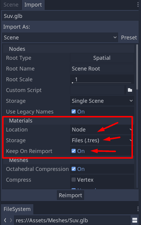 - UPDATE 1: Partially solved with Godot 4. Godot 4 has an "Advanced Mesh Import" dialog where you can choose the material overrides in a single sport. But there are still 3 material assignment spots per Mesh, which is still confusing and unclear.