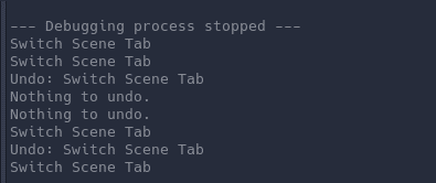 Godot only processed the undo action "Switch Scene Tab" and then stated "Nothing to undo", and it just kept jumping between the Switch Tab actions.