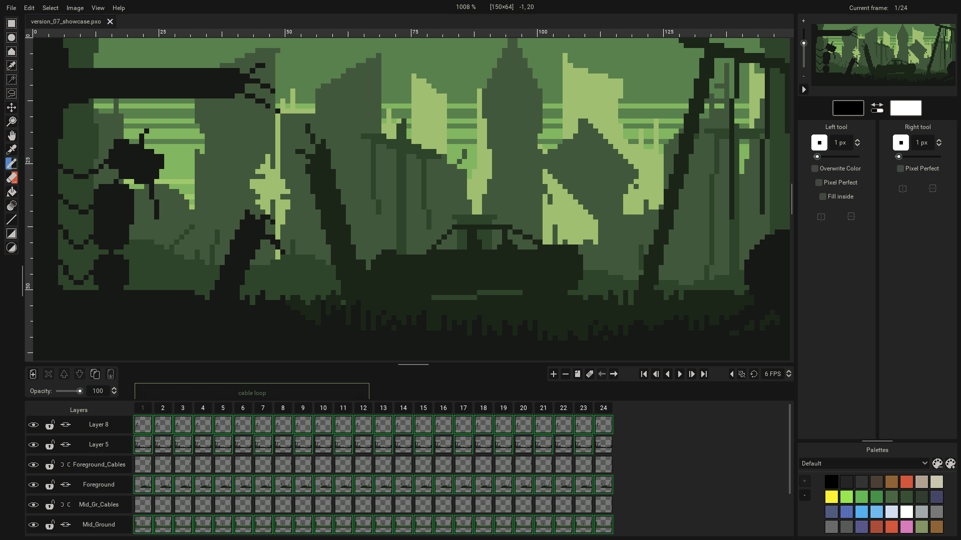 Pixelorama is a free and open source pixel art editor, proudly created with the Godot Engine, by Orama Interactive. Whether you want to make animated pixel art, game graphics, tiles and any kind of pixel art you want, Pixelorama has you covered with its variety of tools and features. Free to use for everyone, forever!